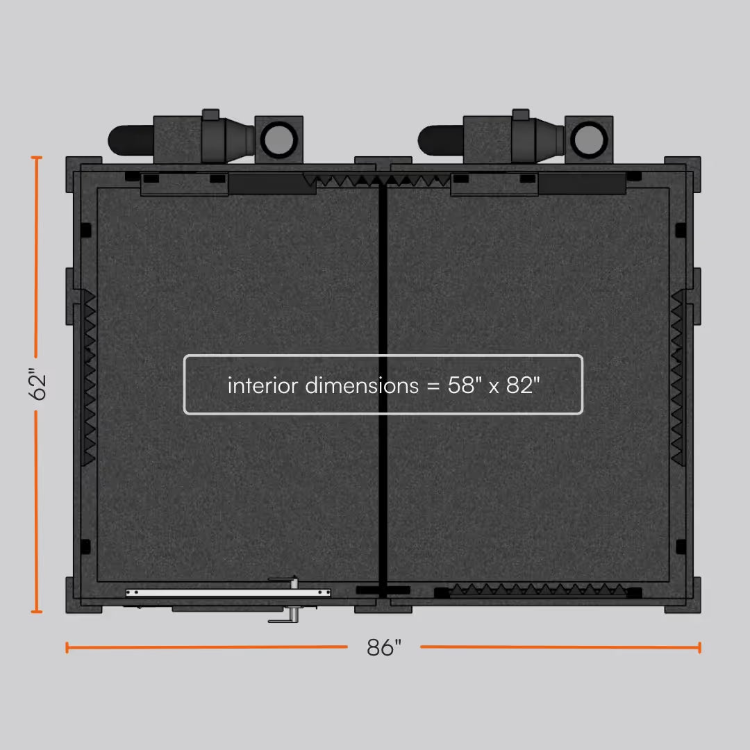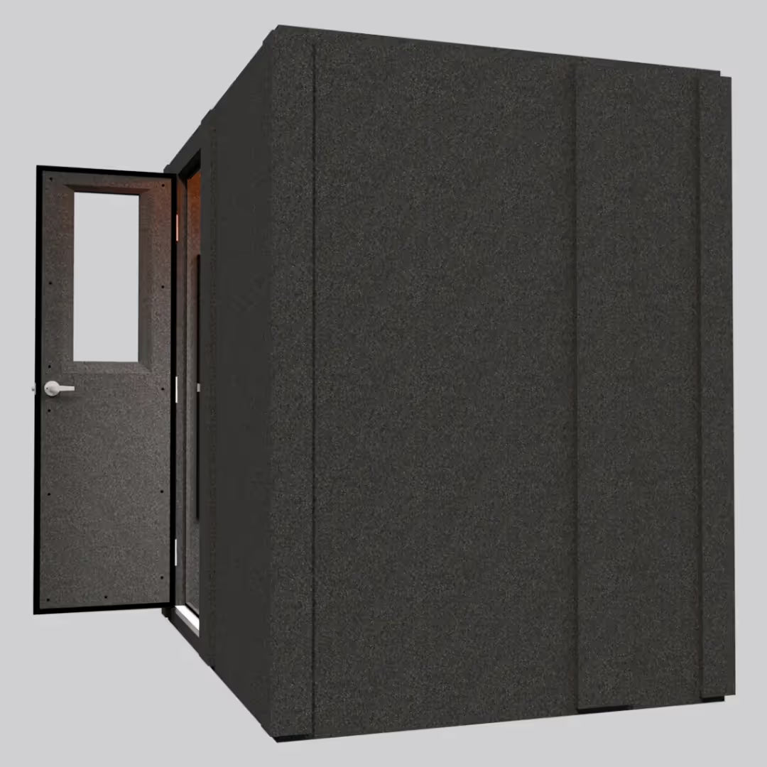 The 5 ft × 7 ft format offers more interior comfort than smaller booth sizes while maintaining portability and modular design benefits. It is a smart option for users who need moderate sound isolation and extra floor space for seating, instruments, workstations, or shared tasks. The booth can also be upgraded to an Enhanced (double-wall) configuration if greater isolation is required in the future.